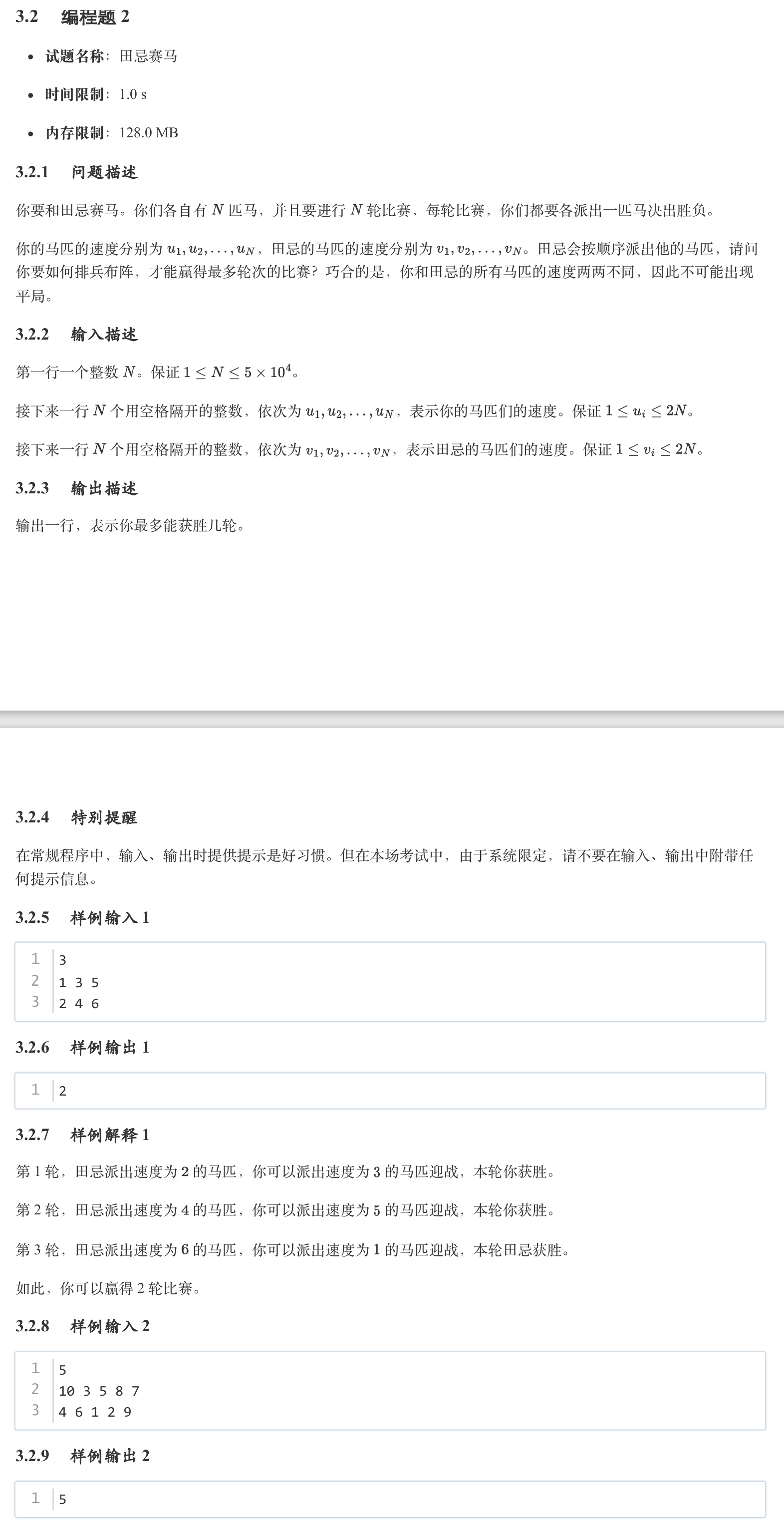 4372: GESP C++ 四级 4田忌赛马202312